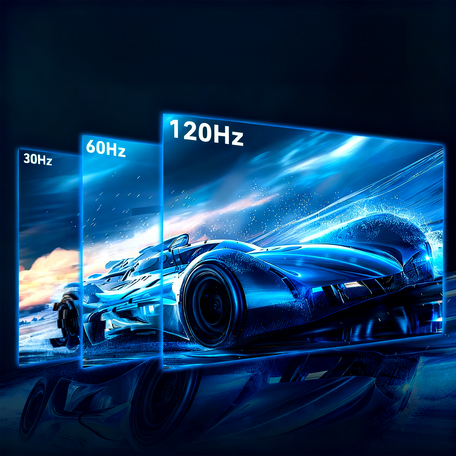 - 120Hz Oppdateringsfrekvens – Sikrer flytende spilling og videoavspilling.