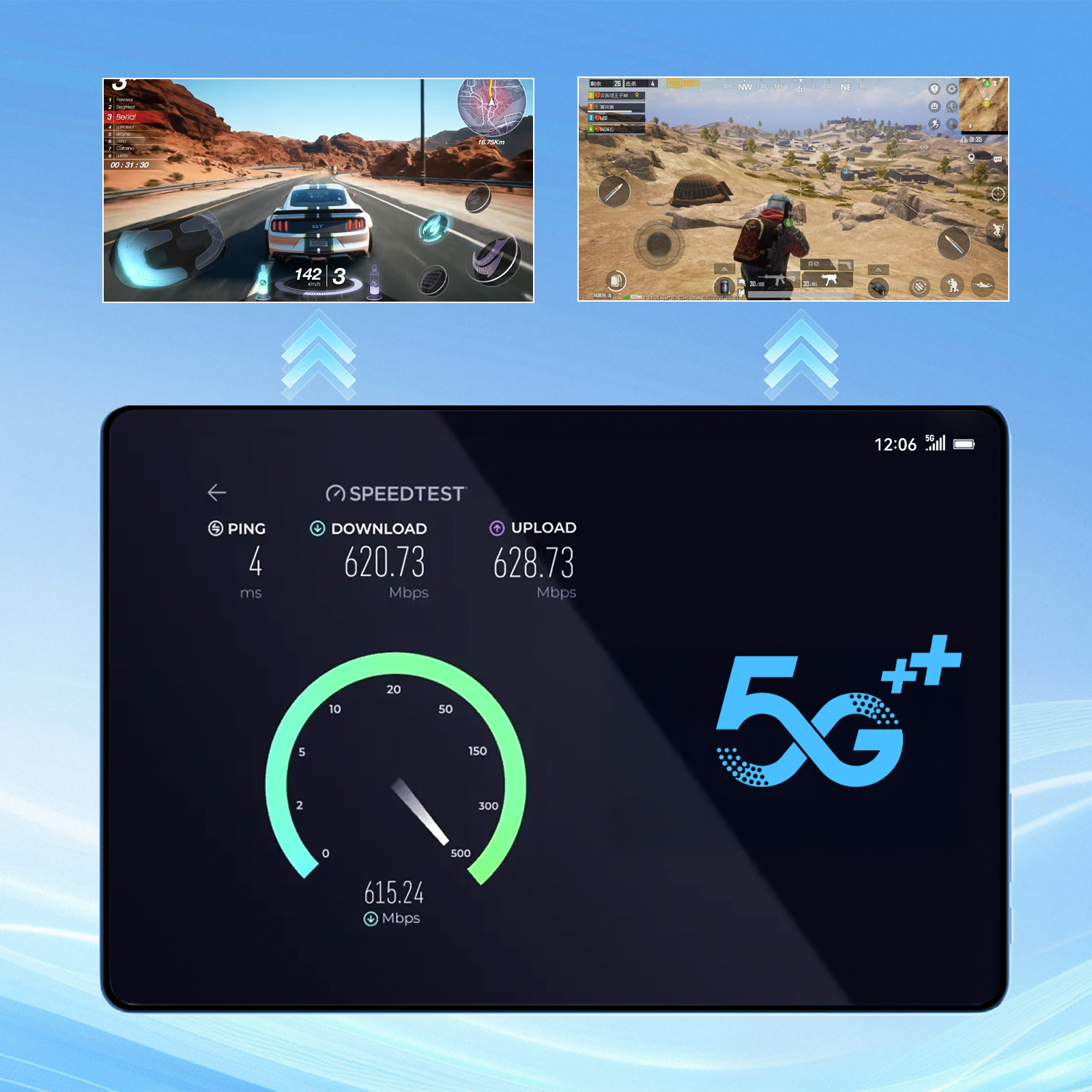 Takket være 5G New Era Smart Communication-teknologi støtter enheden WLAN (WiFi) og mobilnettverk samtidig, noe som sikrer en stabil og rask tilkobling når som helst og hvor som helst. I spill og videoer opplever brukere lavere forsinkelse og mer flytende avspilling uten lag.
